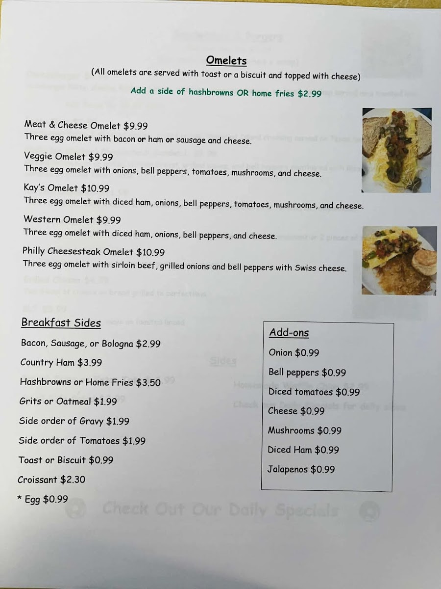 Whether you're in for a quick bite or a leisurely meal, Kay's Cafe is sure to leave you smiling and satisfied.